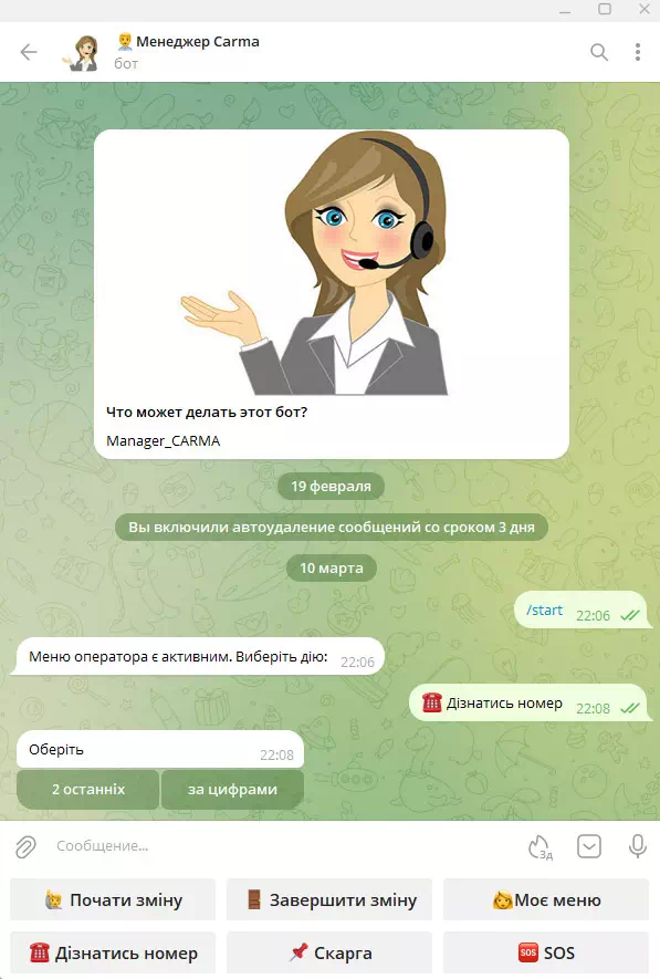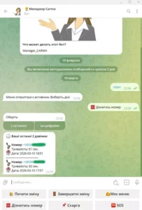 Якщо в програмі прийому замовлень номер пасажира відображається не повністю, ви можете отримати його за допомогою бота «Менеджер Carma».