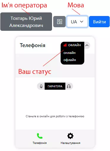 - Оператор на зміні постійно перебуває в режимі онлайн.